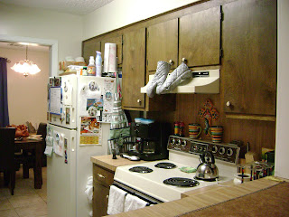 the stove area in the kitchen (that cross was a gift from Paul on our honeymoon to Belize):