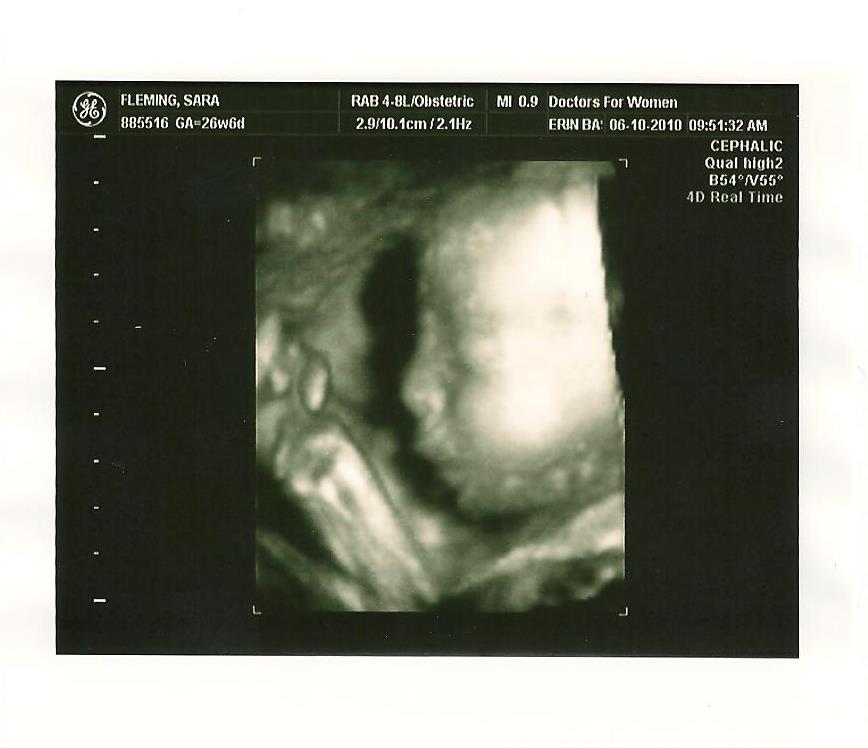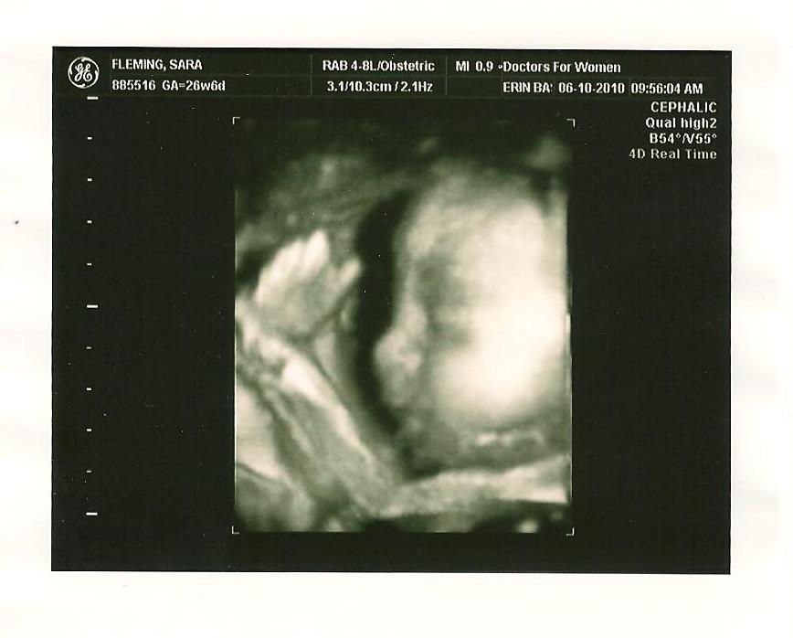 "Everybody says I look just like my Daddy. I have his nose and profile. But, I also have Mommy's cheeks and rounder face!" "I was not happy here. Mommy couldn't eat for 12 hours because of her glucose test, and the ultrasound tech. kept poking me to get me to turn. I don't usually play or kick at this time of day!"