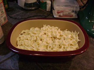 1. Cook noodles according to package directions and set aside in casserole dish.