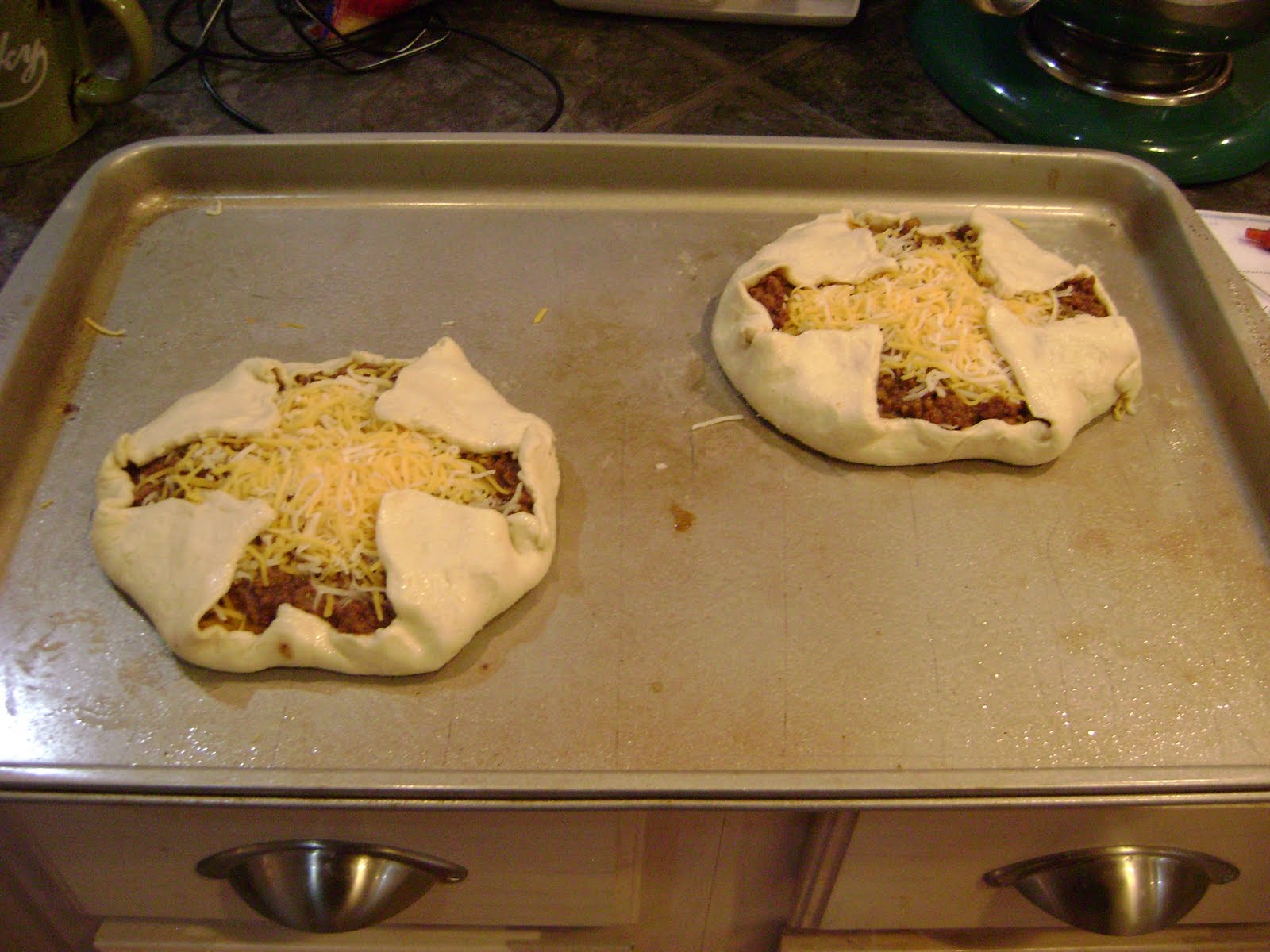 7. Finally, fold up the corners of the pastry dough, then pinch up the sides also. It should form the shape of a cross! :) (Now you know why they're called "Christian Burrito Pies").